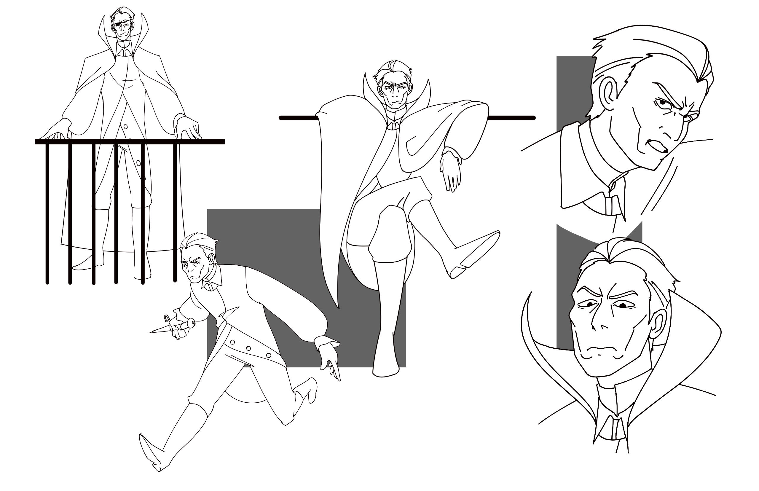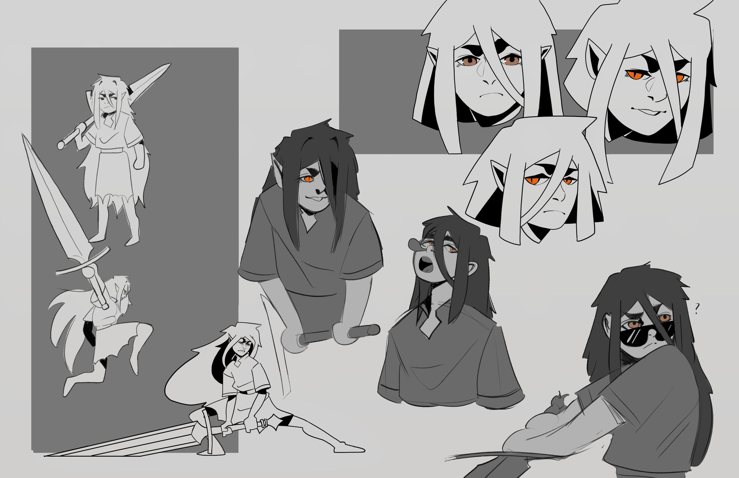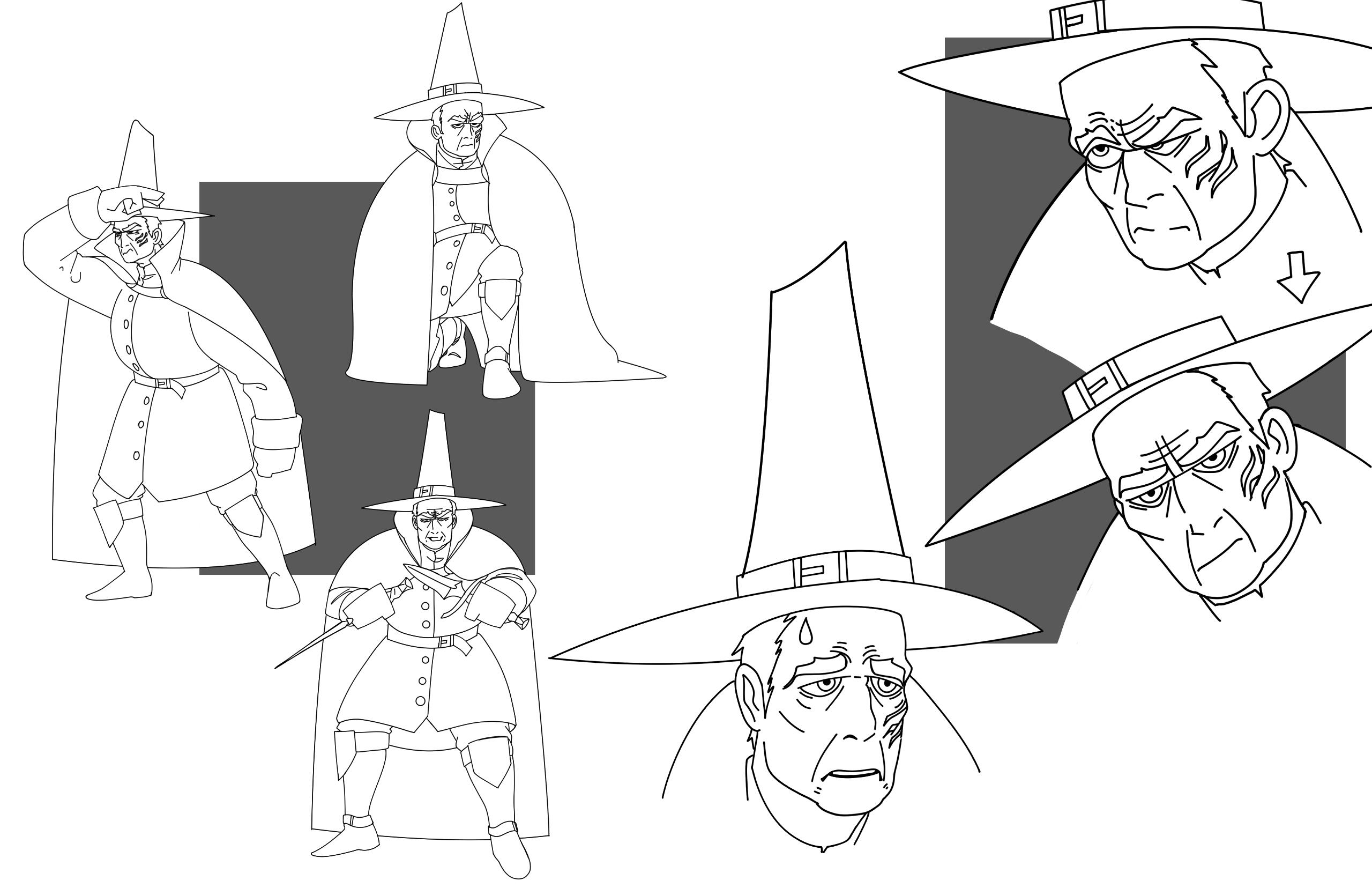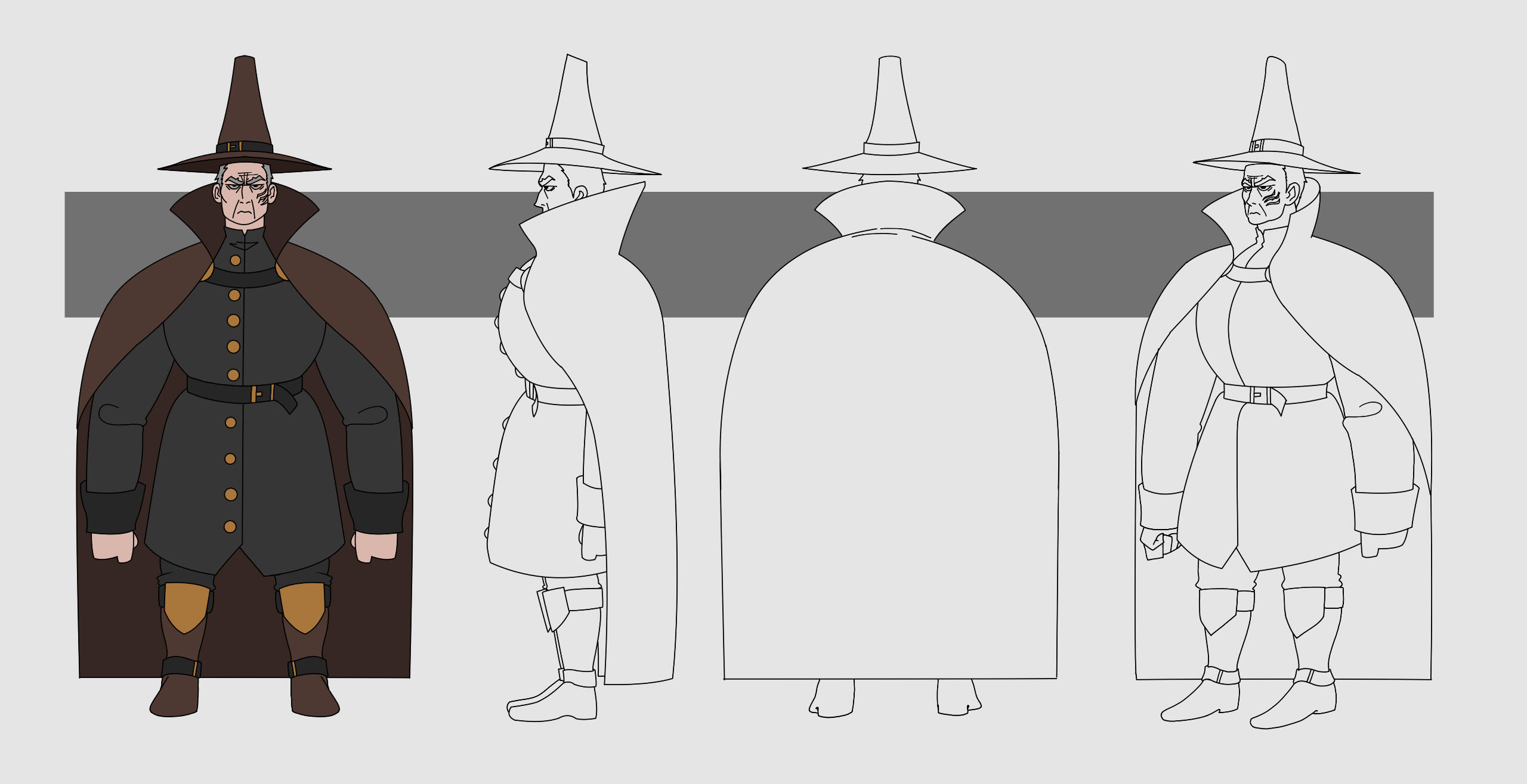 Alongside the creation of my animatic, I worked on refining the designs of the two principal characters.This involved turn arounds, prop development, and expression sheets.I particularly enjoyed the challenge of designing two cloaked characters while attempting to distinguish their silhouettes.Many of these were made in my main program of Clip Studio Paint.