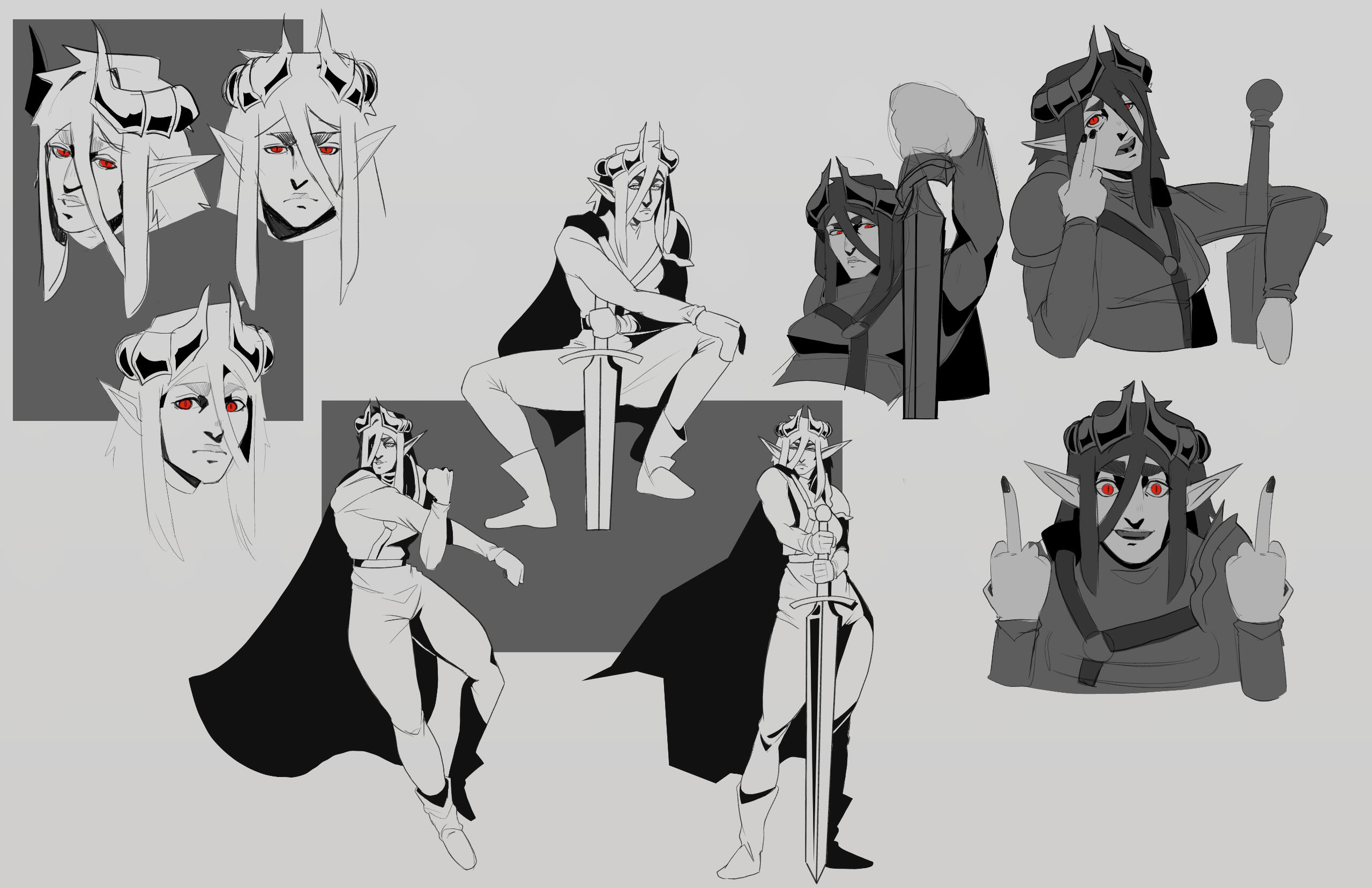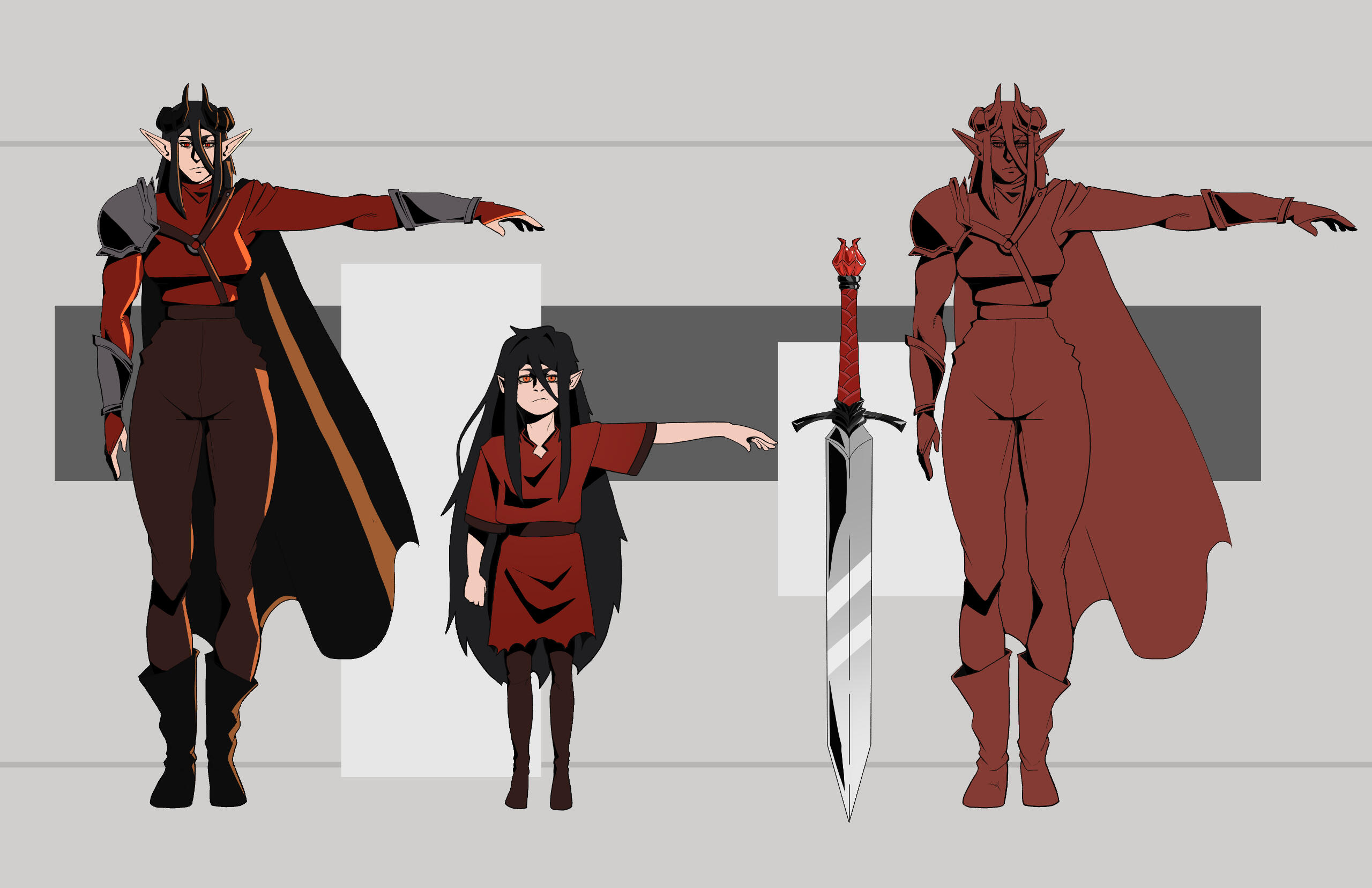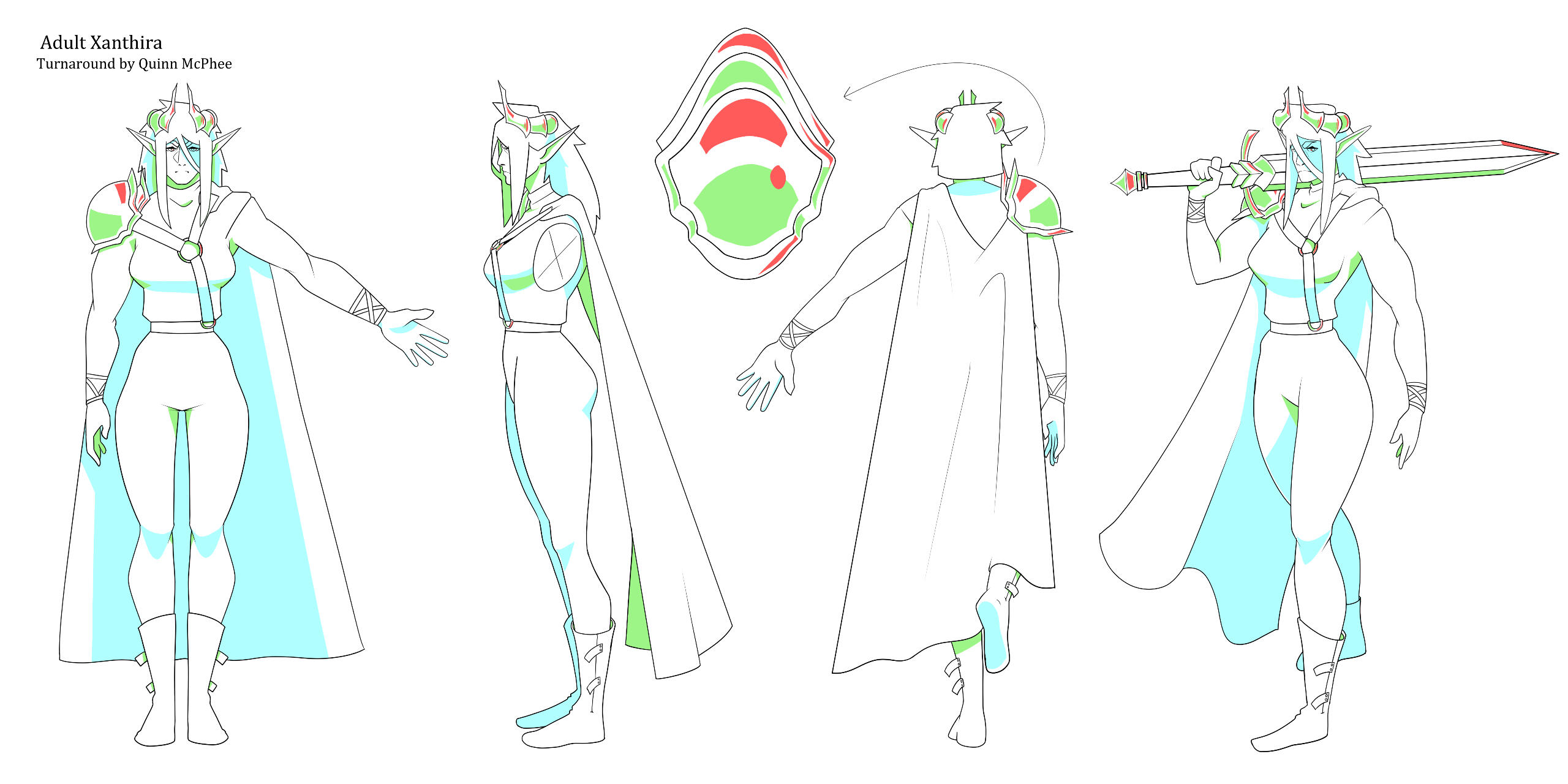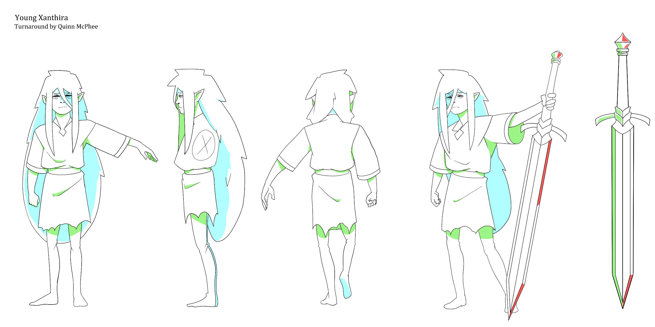 Alongside the creation of my animatic, I worked on refining the designs of the two principal characters.This involved turn arounds, prop development, and expression sheets.I particularly enjoyed the challenge of designing two cloaked characters while attempting to distinguish their silhouettes.Many of these were made in my main program of Clip Studio Paint.